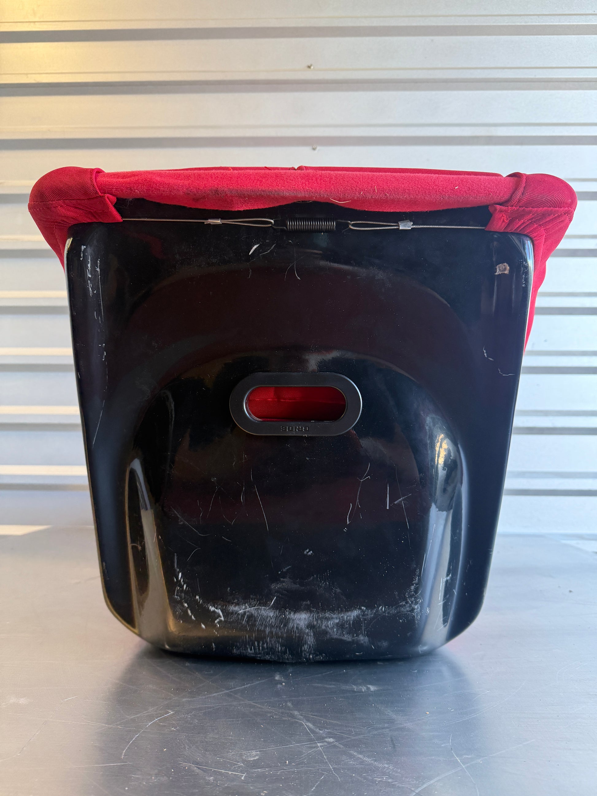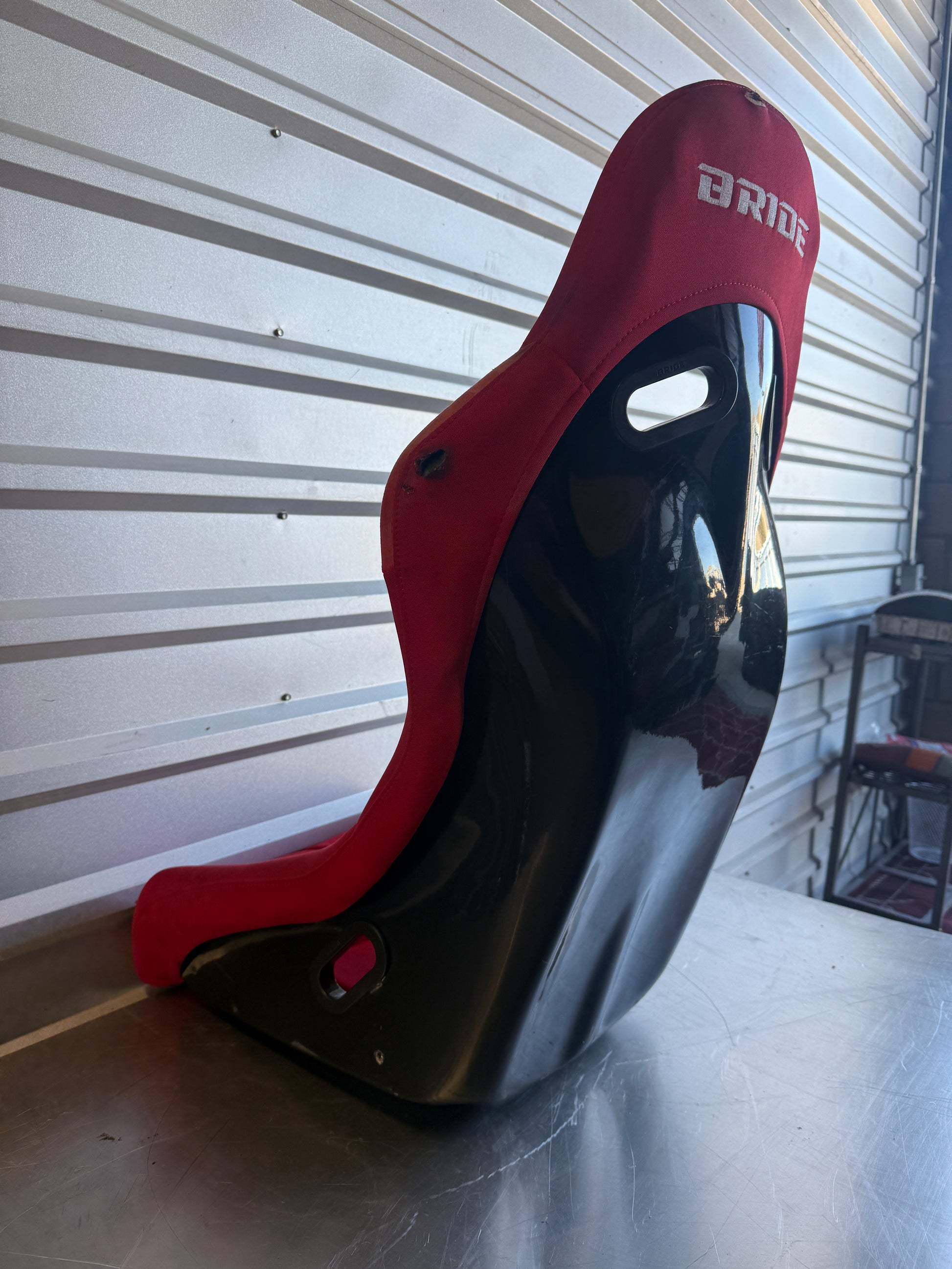 This is a red cloth bucket seat styled after Bride seats. This seat is likely a replica (not genuine Bride) and is being sold as such. Seat shows normal cosmetic wear from use, including two small tears in the fabric (see photos). Foam structure is intact and the seat remains solid with no cracks or structural damage.