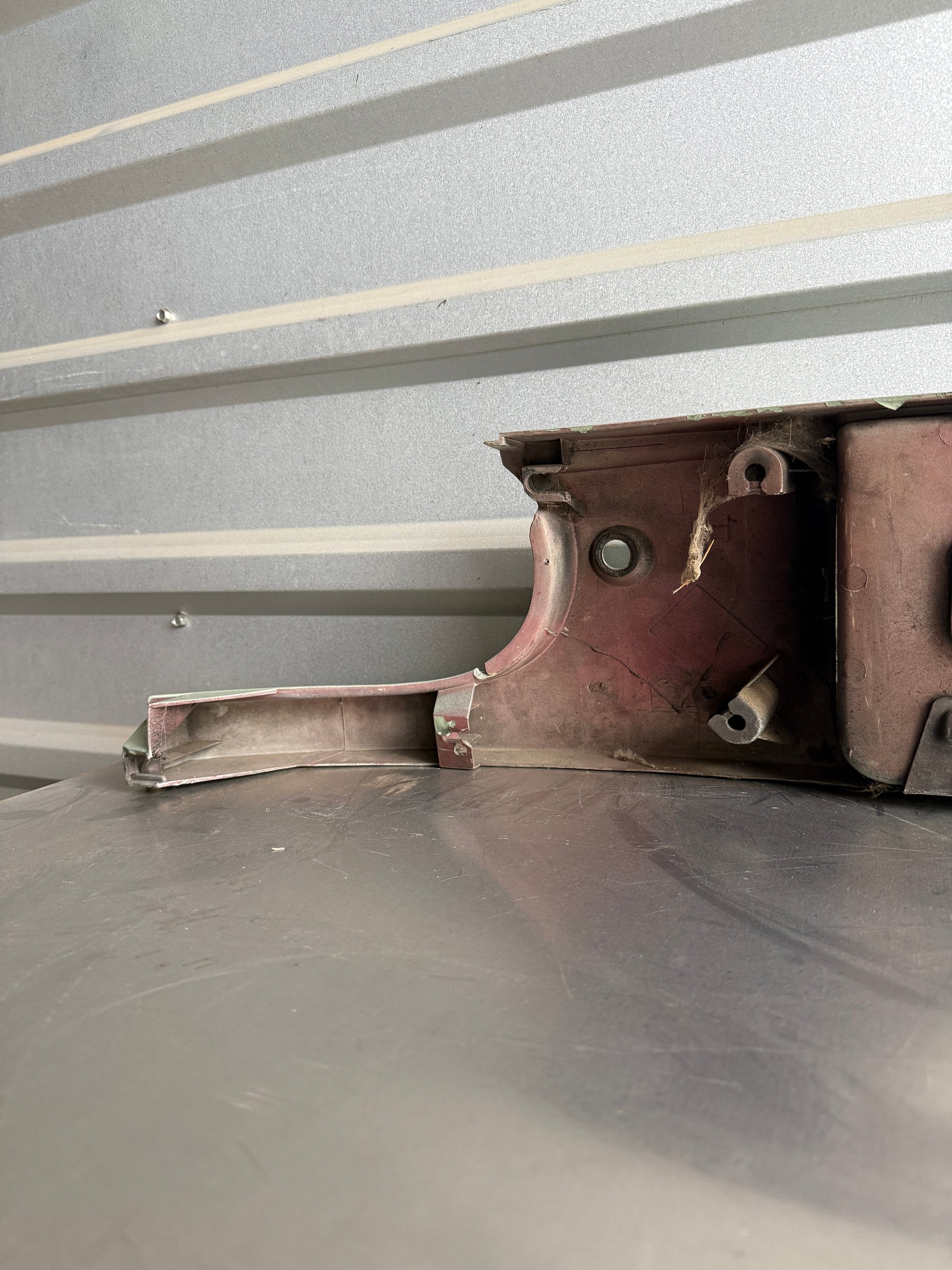 Green OEM rear finish panel removed from a 1990 NA Mazda Miata.